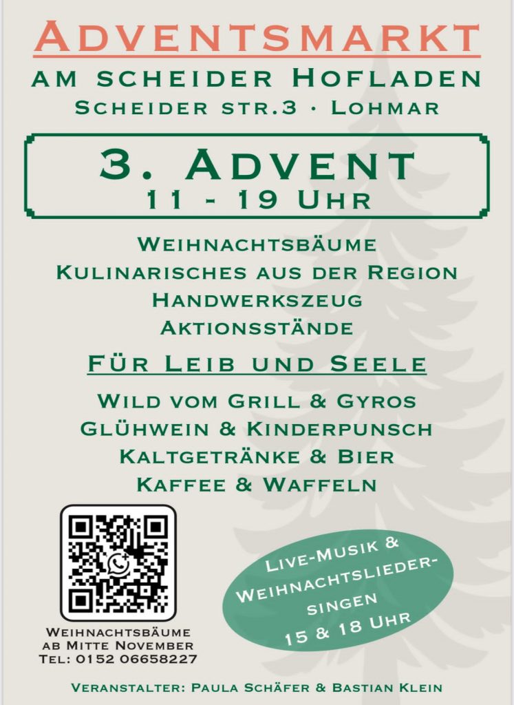Von Montag, 22.12.2025 bis Mittwoch, 07.01.2026 bleibt der Laden geschlossen. Ab Donnerstag, 08.01.2026 sind wir wieder gerne zu unseren bekannten Öffnungszeiten für Sie da. Der „Eier-Notdienst“ bleibt die ganze Zeit